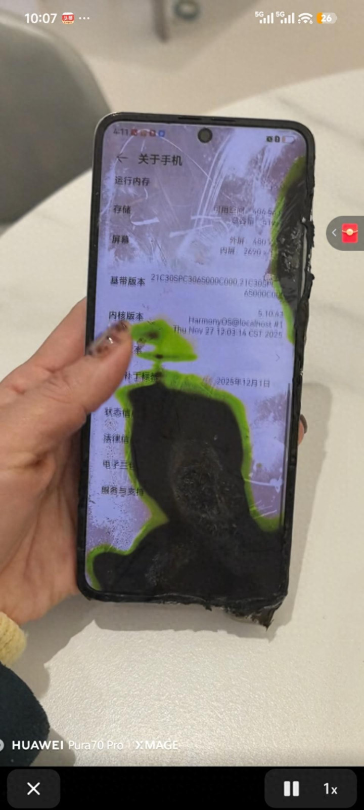 比如,华为nova Flip这款翻盖折叠屏手机,别看它已经是2024年的产品了,但它在电商平台似乎还能买到全新的机子,而更重要的是,近期有个nova flip的用户用他的鲁莽再次证明了这款产品的可靠性:这款机子掉到火坑里烧了好一会儿,结果捞起来一看翻盖依然丝滑、滑屏依然流畅,尽管乌漆嘛黑的,甚至屏幕也被烧黑了一大块了。